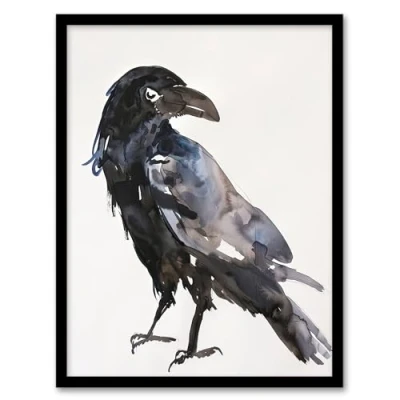 Artery8 A Single Raven Bird Bright Watercolour Painting Living Room Artwork Framed Wall Art Print A4