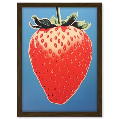 Artery8 A Single Strawberry Block Colour Artwork Red on Blue Bold Bright Minimalist Kitchen Decor Framed A3 Wall Art Print