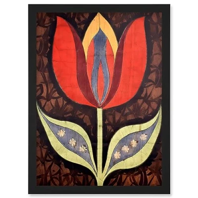 Artery8 A Single Tulip Flower Batik Style Pattern Folk Art Artwork Framed Wall Print A4