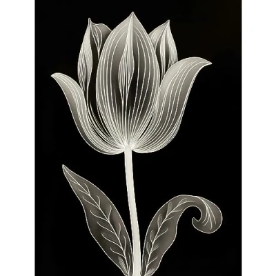 Artery8 A Single Tulip Flower Black and White Folk Art Extra Large XL Wall Poster Print