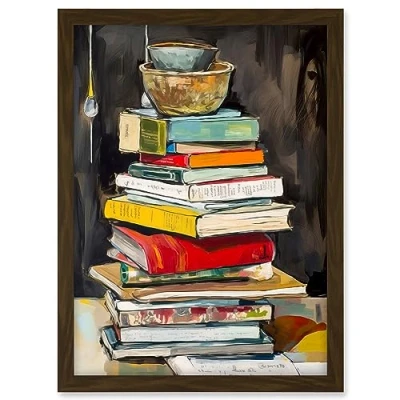 Artery8 A Stack of Recipe Cookbooks with Bowls on Top Artwork Framed A3 Wall Art Print
