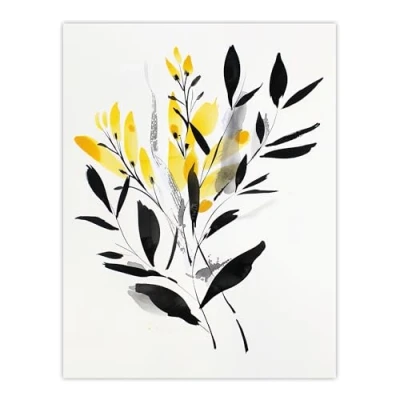 Artery8 Abstract Botanical Yellow Black Leaves Fronds Living Room Large Wall Art Poster Print Thick Paper 18X24 Inch