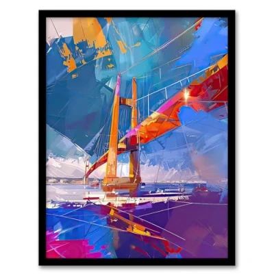 Artery8 Abstract Bridge Colourful Palette Knife Painting Living Room Artwork Framed Wall Art Print A4