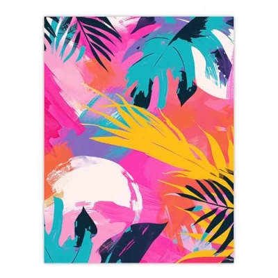 Artery8 Abstract Bright and Bold Leaves Tropical Painting For Living Room Extra Large XL Wall Art Poster Print