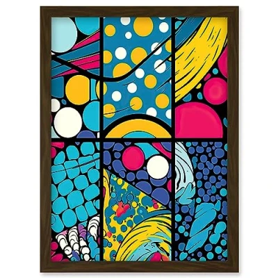 Artery8 Abstract Bubbles and Geometric Patterns Comic Book Style Red Blue Yellow White Pop Art Halftone Artwork Framed Wall Print A4