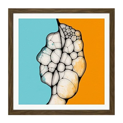 Artery8 Abstract Cocoon Blue Orange Painting Square Wooden Framed Wall Art Print Picture 16X16 Inch