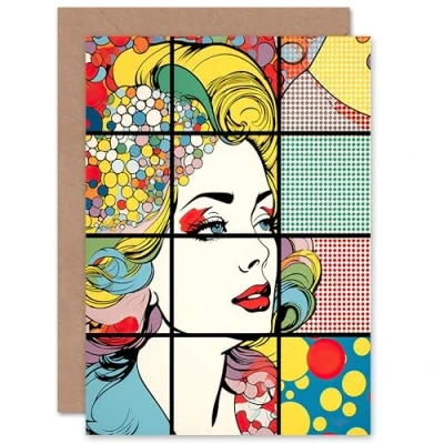 Artery8 Abstract Comic Book Bubbles Woman Face for Wife Her Mum Sister Daughter Mom Gran Nan Birthday Thank You Congratulations Blank Art Greeting Card