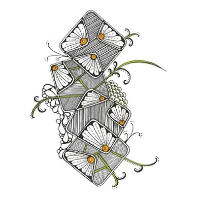 Artery8 Abstract Daisy Doodle Cubes Painting Premium Wall Art Canvas Print 18X24 Inch