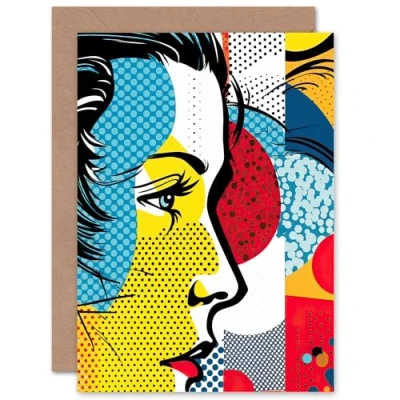 Artery8 Abstract Face Comic Book Woman for Wife Her Mum Sister Daughter Mom Gran Nan Birthday Thank You Congratulations Blank Art Greeting Card