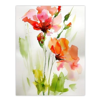 Artery8 Abstract Flowers Red Green Watercolour Painting Living Room Large Wall Art Poster Print Thick Paper 18X24 Inch