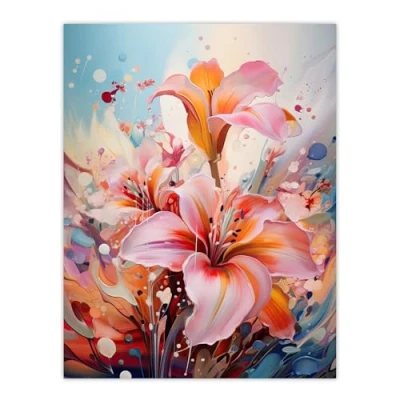 Artery8 Abstract Flowers Vibrant Painting Dreamy Meadow Of Lilies Large Wall Art Poster Print Thick Paper 18X24 Inch