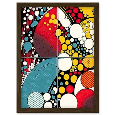 Artery8 Abstract Geometric Patterns and Bubbles Comic Book Style Red Blue Yellow White Pop Art Halftone Artwork Framed Wall Print A4