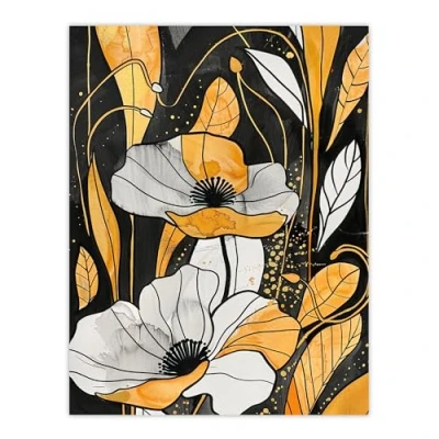 Artery8 Abstract Gold Black Poppy Flowers Floral Painting Living Room Large Wall Art Poster Print Thick Paper 18X24 Inch