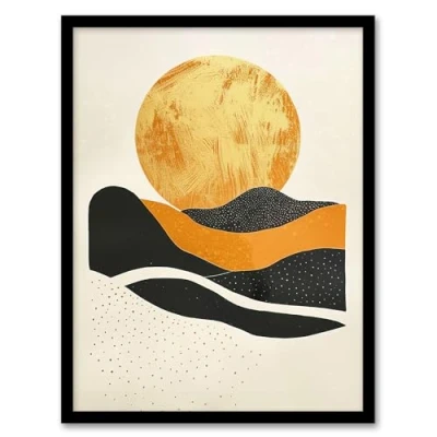 Artery8 Abstract Gold Full Moon Rising Boho Landscape Living Room Artwork Framed Wall Art Print A4