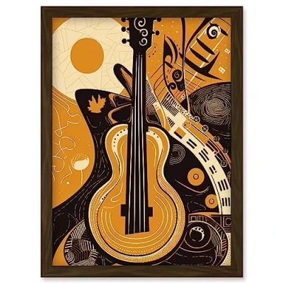 Artery8 Abstract Guitar Music Poster Graphic Illustration Artwork Framed Wall Art Print A4