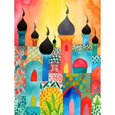 Artery8 Abstract Islamic Cityscape Folk Art Large Wall Poster Print Thick Paper 18X24 Inch