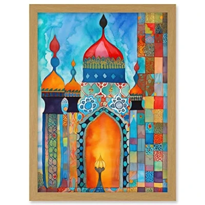 Artery8 Abstract Islamic Mosque Entrance Prayer Folk Art Artwork Framed A3 Wall Print