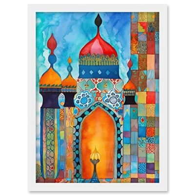 Artery8 Abstract Islamic Mosque Entrance Prayer Folk Art Artwork Framed A3 Wall Print
