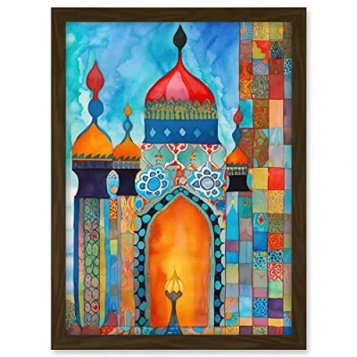 Artery8 Abstract Islamic Mosque Entrance Prayer Folk Art Artwork Framed A3 Wall Print