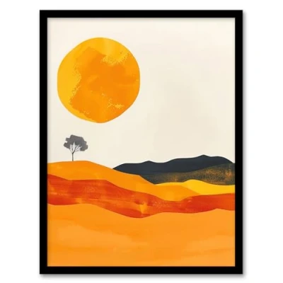 Artery8 Abstract Landscape Lone Tree Bright Boho Painting Living Room Artwork Framed Wall Art Print A4