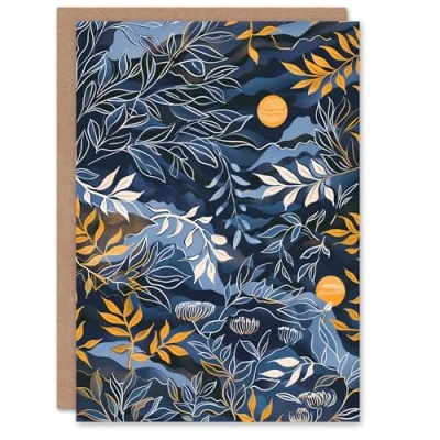 Artery8 Abstract Leaves Suns Painting Blue Ochre Night Sky Greeting Birthday Card Him Her All Blank