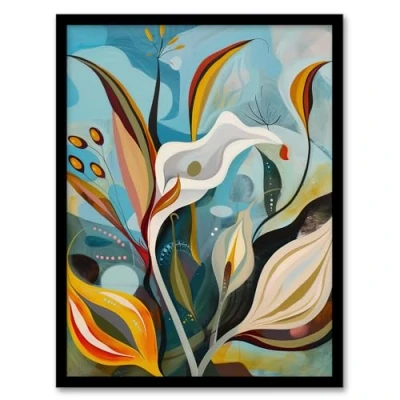 Artery8 Abstract Lily Flowers in Bloom Colourful Spring Living Room Artwork Framed Wall Art Print A4