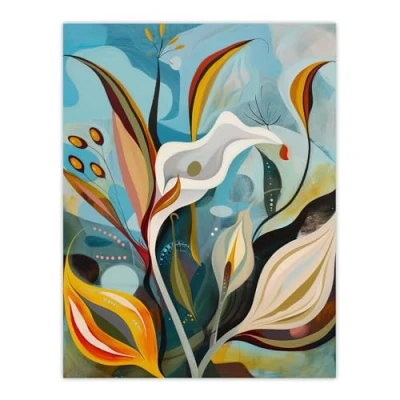 Artery8 Abstract Lily Flowers in Bloom Colourful Spring Living Room Extra Large XL Wall Art Poster Print