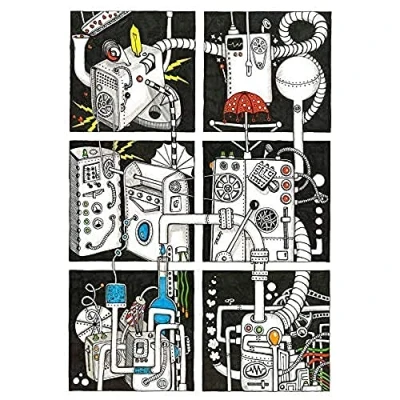 Artery8 Abstract Machines Chemistry Doodle Painting Art Print Canvas Premium Wall Decor Poster Mural