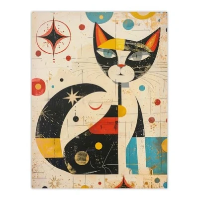 Artery8 Abstract Mid Century Modern Atomic Cat Lover For Living Room Extra Large XL Wall Art Poster Print