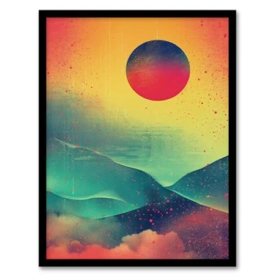 Artery8 Abstract Mountain Landscape Sunset For Living Room Artwork Framed Wall Art Print A4