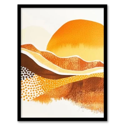 Artery8 Abstract Mountains Sunset Amber Orange Landscape Living Room Artwork Framed Wall Art Print A4
