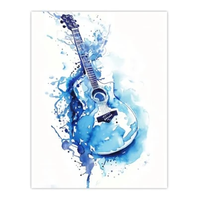 Artery8 Abstract Music Guitar Blue Watercolour Splat Living Room Large Wall Art Poster Print Thick Paper 18X24 Inch
