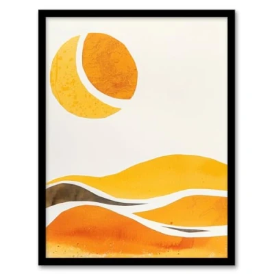 Artery8 Abstract Orange Amber Landscape Hills and Sun Living Room Artwork Framed Wall Art Print A4