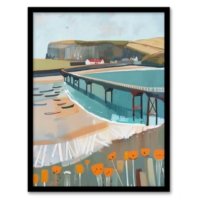 Artery8 Abstract Painting Hunt Cliff Saltburn Yorkshire Living Room Artwork Framed Wall Art Print A4