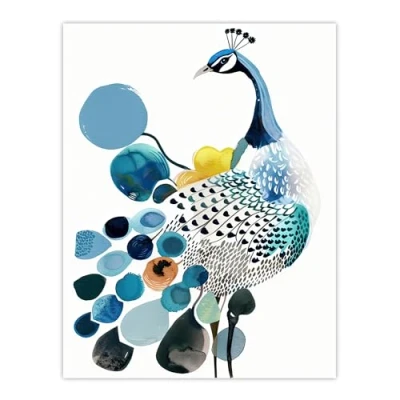 Artery8 Abstract Pattern Peacock Bird Bright Watercolour Living Room Large Wall Art Poster Print Thick Paper 18X24 Inch