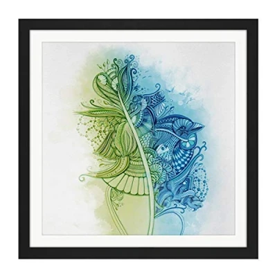 Artery8 Abstract Patterned Bird Leaf Painting Square Wooden Framed Wall Art Print Picture 16X16 Inch