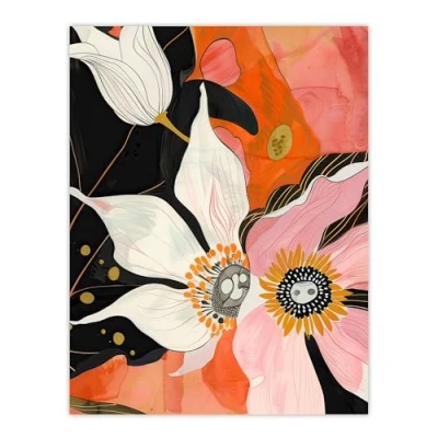 Artery8 Abstract Pink Orange Flowers Artwork Floral Boho Living Room Extra Large XL Wall Art Poster Print