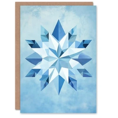 Artery8 Abstract Polygonal Snowflake Blue Geometric Blank For Him Or Her Art Christmas Card