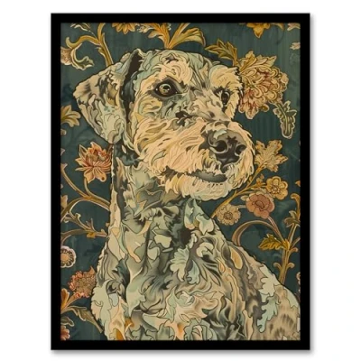 Artery8 Abstract Portrait Dog in Flowers Painting Animal Living Room Artwork Framed Wall Art Print A4