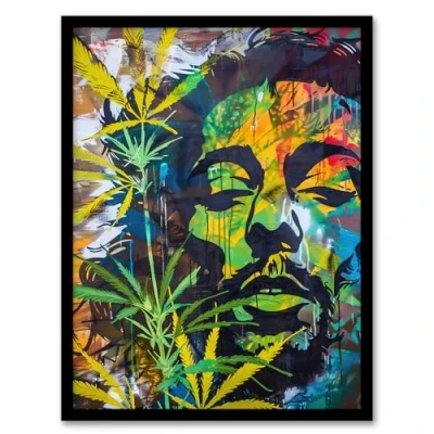Artery8 Abstract Portrait Man in Weed Hemp Leaves Reggae Living Room Artwork Framed Wall Art Print 18X24 Inch