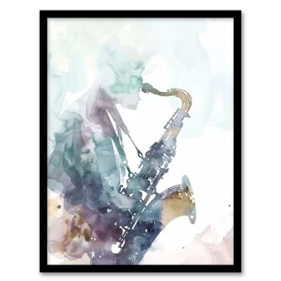 Artery8 Abstract Saxophone Jazz Musician Watercolour Living Room Artwork Framed Wall Art Print A4