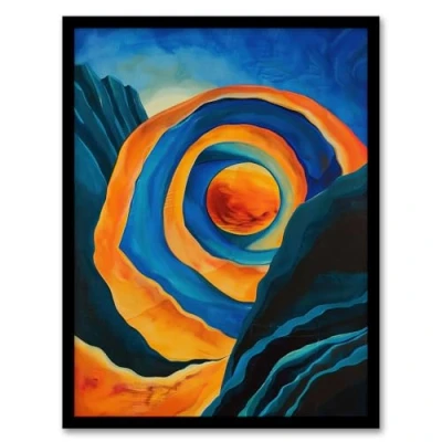 Artery8 Abstract Sci Fi Painting Planet Tunnel Blue Orange Living Room Artwork Framed Wall Art Print A4
