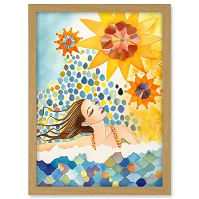 Artery8 Abstract Sea Swimming Folk Art Bathroom Artwork Framed A3 Wall Print