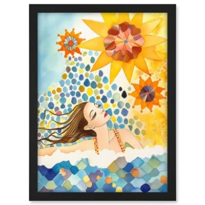 Artery8 Abstract Sea Swimming Folk Art Bathroom Artwork Framed A3 Wall Print