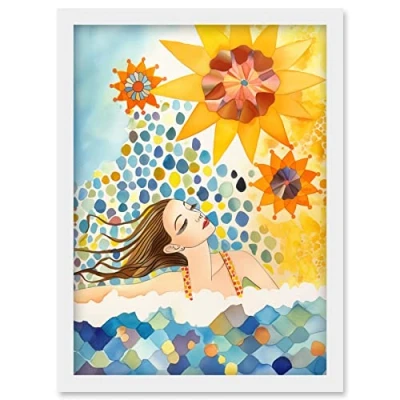Artery8 Abstract Sea Swimming Folk Art Bathroom Artwork Framed Wall Print A4