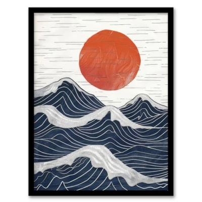 Artery8 Abstract Sunset Seascape Waves Sun Painting Living Room Bathroom Artwork Framed Wall Art Print A4