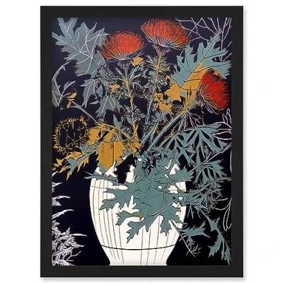 Artery8 Abstract Thistle Vase Dark Linocut Floral Red Green Ochre Scottish Plant Artwork Framed Wall Art Print A4