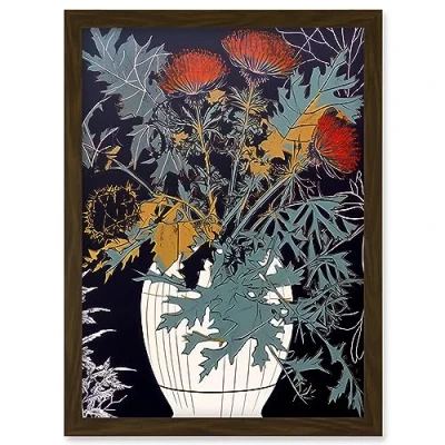 Artery8 Abstract Thistle Vase Dark Linocut Floral Red Green Ochre Scottish Plant Artwork Framed Wall Art Print A4