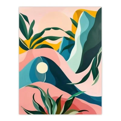 Artery8 Abstract Tropical Leaves Mountains Pastel Colour Living Room Large Wall Art Poster Print Thick Paper 18X24 Inch