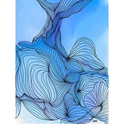 Artery8 Abstract Whale Tail Floral Ocean Blue Painting Premium Wall Art Canvas Print 18X24 Inch